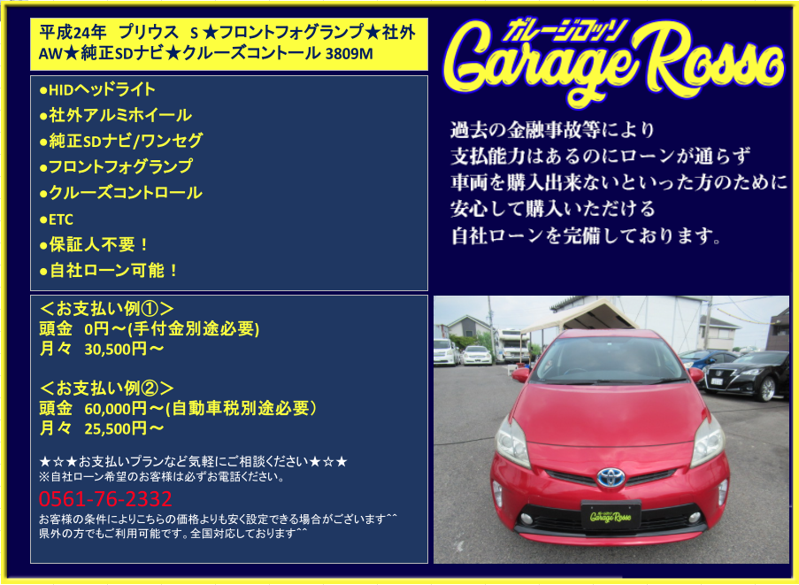 | ●HIDヘッドライト ●社外アルミホイール ●純正SDナビ/ワンセグ ●フロントフォグランプ ●クルーズコントロール ●ETC ●保証人不要! ●自社ローン可能! <お支払い例①> 頭金 0円~(手付金別途必要) 月々 30,500円~ <お支払い例②> 頭金 60,000円~(自動車税別途必要) 月々 25,500円~ ★☆★お支払いプランなど気軽にご相談ください★☆★ ☆お支払い例の他にもプランは色々ご相談出来ます☆ ☆ボーナス併用等、プランは色々ご相談出来ます☆ ☆保証人無でもOKです。(契約条件有)☆ ☆頭金を増額頂いた場合、総額より値引き出来ます。☆ ☆保証人をお付けいただいた場合も値引き対象です。☆ ☆その他のお支払いプランご相談に乗ります。☆ 自社ローンの方は事前にお電話下さい☆ 0561-76-2332 |