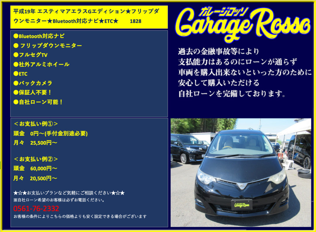 | ●フリップダウンモニター ●純正ナビ ●フルセグ ●オットマン ●バックカメラ ●社外アルミホイール ●ETC ●保証人不要! ●自社ローン可能! <お支払い例①> 頭金 0円~(手付金別途必要) 月々 25,500円~ <お支払い例②> 頭金 60,000円~ 月々 20,500円~ ★☆★お支払いプランなど気軽にご相談ください★☆★ ☆お支払い例の他にもプランは色々ご相談出来ます☆ ☆ボーナス併用等、プランは色々ご相談出来ます☆ ☆保証人無でもOKです。(契約条件有)☆ ☆頭金を増額頂いた場合、総額より値引き出来ます。☆ ☆保証人をお付けいただいた場合も値引き対象です。☆ ☆その他のお支払いプランご相談に乗ります。☆ 自社ローンの方は事前にお電話下さい☆ 0561-76-2332 |