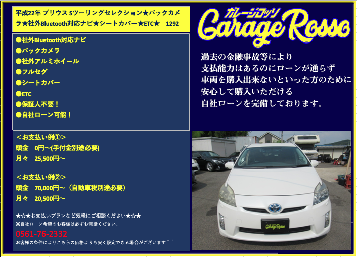 | ●社外Bluetooth対応ナビ ●バックカメラ ●社外アルミホイール ●フルセグ ●シートカバー ●ETC ●保証人不要! ●自社ローン可能! <お支払い例①> 頭金 0円~(手付金別途必要) 月々 25,500円~ <お支払い例②> 頭金 70,000円~(自動車税別途必要) 月々 20,500円~ ★☆★お支払いプランなど気軽にご相談ください★☆★ ☆お支払い例の他にもプランは色々ご相談出来ます☆ ☆ボーナス併用等、プランは色々ご相談出来ます☆ ☆保証人無でもOKです。(契約条件有)☆ ☆頭金を増額頂いた場合、総額より値引き出来ます。☆ ☆保証人をお付けいただいた場合も値引き対象です。☆ ☆その他のお支払いプランご相談に乗ります。☆ 自社ローンの方は事前にお電話下さい☆ 0561-76-2332 |